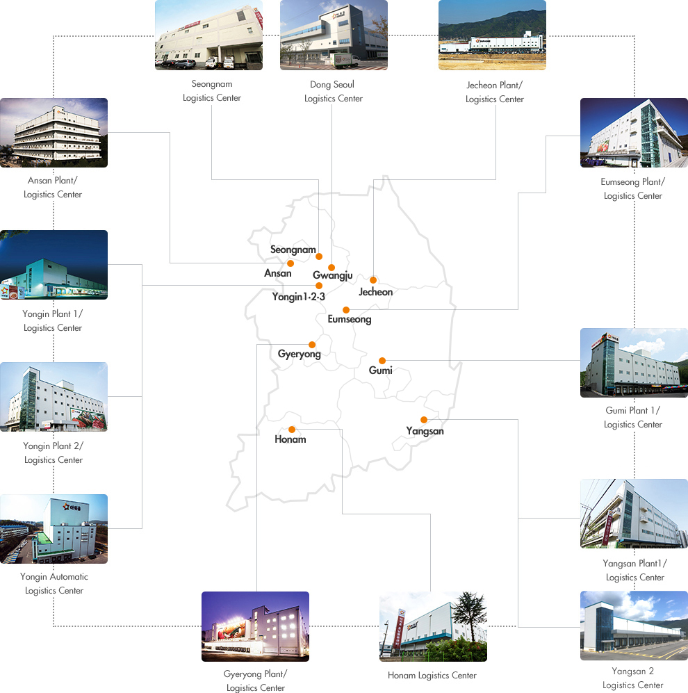 The nationwide network infrastructure is a driving force for Korea’s best general cooking and food company. 13 logistics centers, 9 manufacturing factories, and 4 advanced food processing centers creates synergy based on efficient cooperation. It is the key of the top.