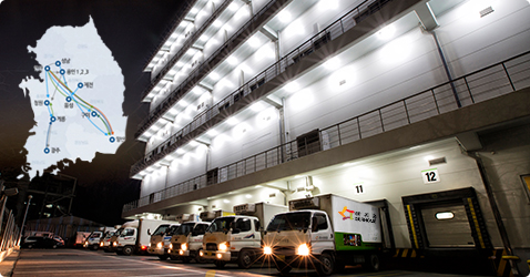 DSD(Direct Store Delivery) delivery products everyday in Korea and the most advanced frozen/refrigerated transport network connect local production networks.